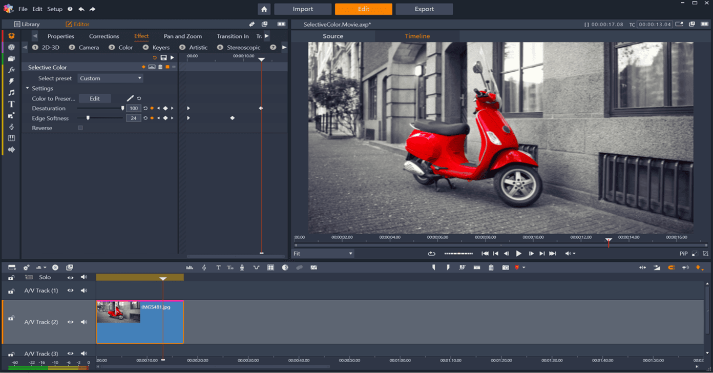 In this release of Pinnacle Studio 21.5 they have added two new features called Selective Color and Seamless Transitions.