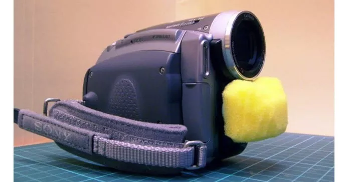Once I had found the ideal foam it then just became a matter of using a box cutter to shape the noise reducer and then attaching it to the camcorder or still camera being used.