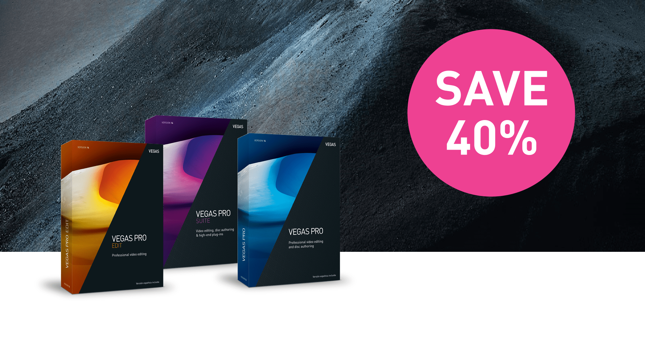 The guys at VegasCreative are offering from May 31st to June 30th a 40% discount on the Vegas Pro 14 range of video editing products.