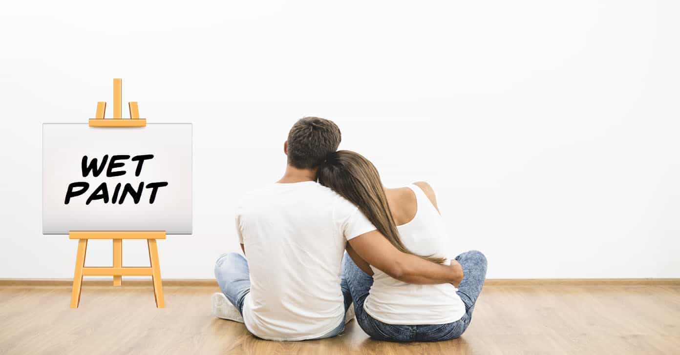 Original Images: Sitting Couple Empty Wall Realstock/Shutterstock, Wood Easel White Canvas La Gorda/Shutterstock.